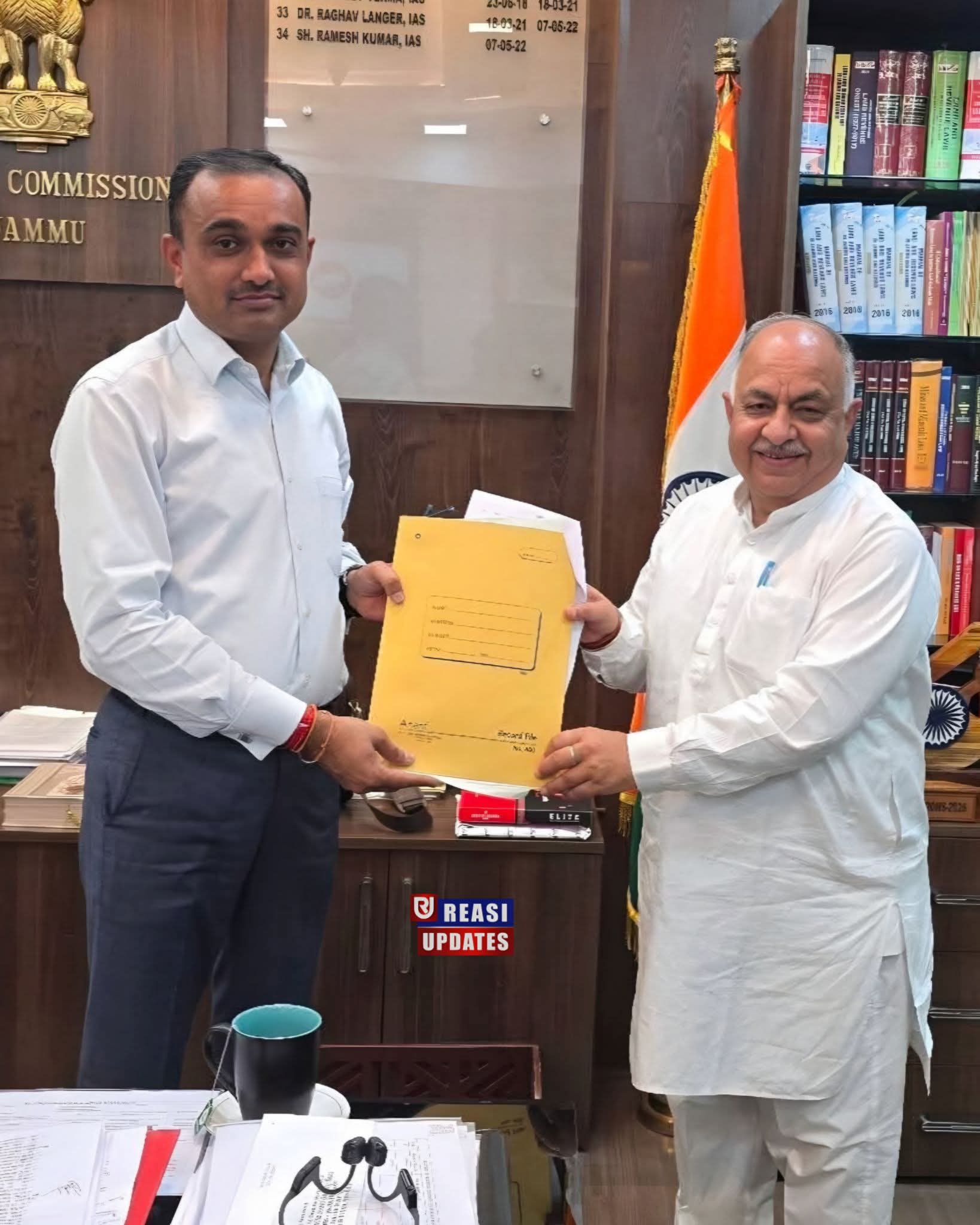 MLA Reasi Kuldeep Raj Dubey met Divisional Commissioner, Jammu, Ramesh Kumar and raised issues and demands of the people of Ransoo, particularly concerning the Shri Shiv Khori Shrine.